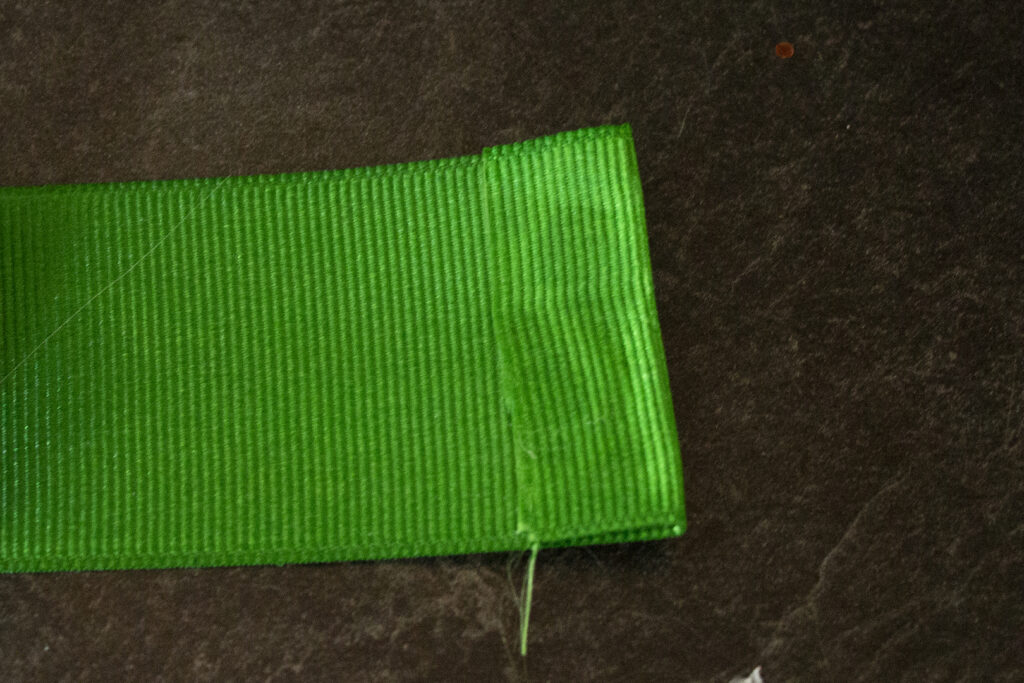 Using an iron, fold the end of your ribbon under (about a half inch) and iron a crease into the ribbon.