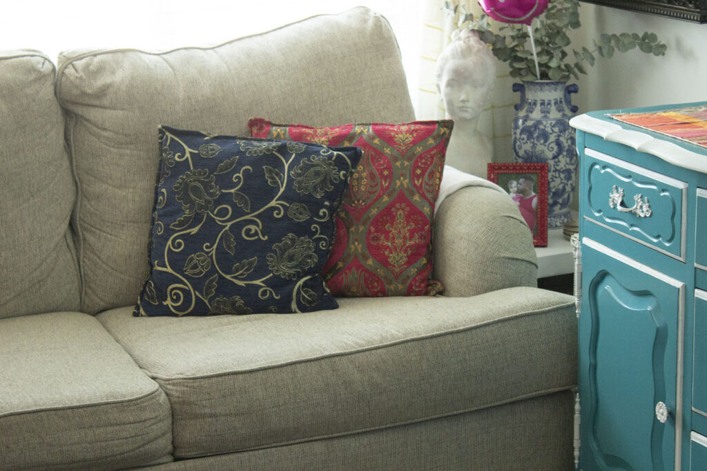 Another way to refresh your space is to make small changes that give everything a fresh look. Make sure your larger investment pieces, like your sofa, are in a neutral color scheme. Add color and pattern with curtains, pillows, and accessories. You can then keep the same base but replace accessories for a whole new look!